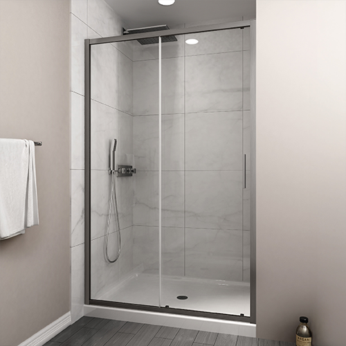 Mampara frontal entre muros, puerta corredera, para receptáculo en obra o plato de ducha (no incluido)