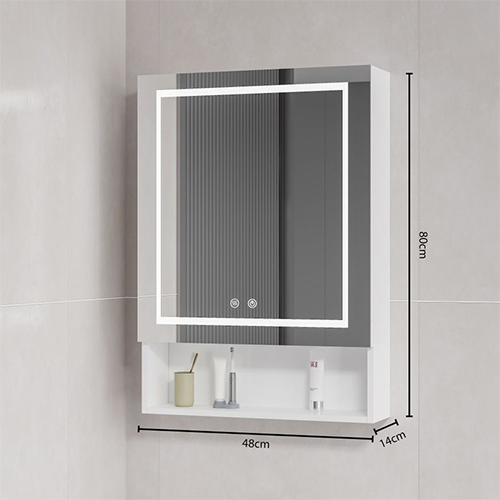 Excelente Mueble Botiquin LED para baño. Incluye Espejo con LED y Antiempañante. Color: Blanco. Medidas: Largo 48cm, Profundidad 14cm, Alto 80cm