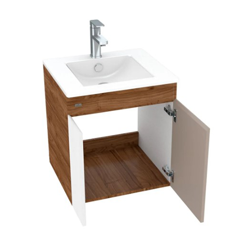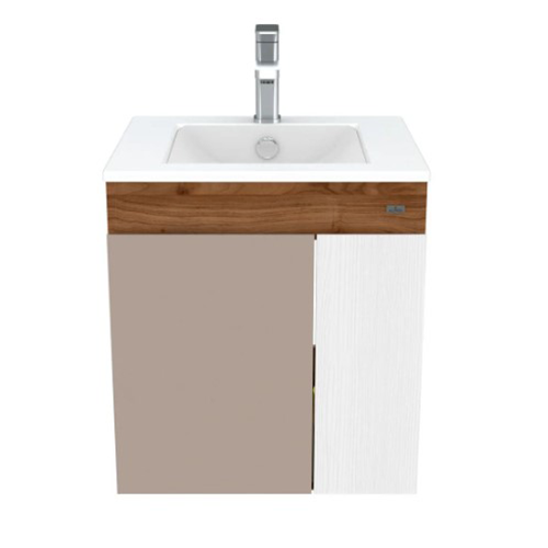 Mueble de Baño Kyle con Lavamanos Suspendido Color Café con 2 Puertas Blanco y Gris 510×550 mm